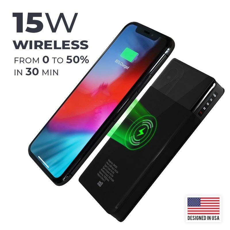 The iPhone backup charger you’re about to hit the buy button on is the fastest charging battery powered phone charger on Amazon. The speedy 15W wireless charging juices up your wireless-charging phone in no time. If you’ve not got one of them, the 22.5W wired charging capability is even faster! We’ll even put a couple of cables, a USB-A to USB-C and a USB-C to Lightning, in the box for you. Absolutely free!